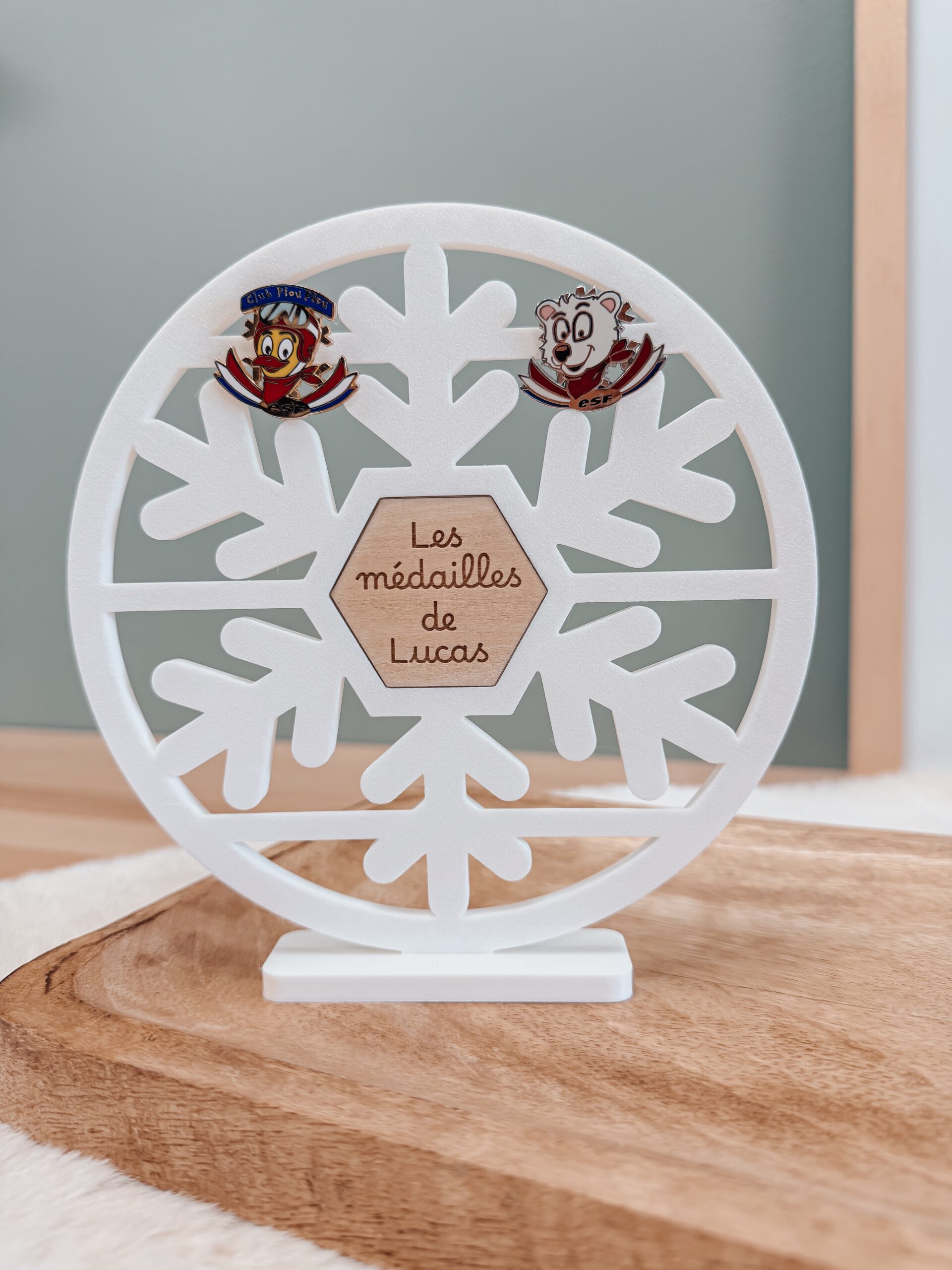 Ce support en forme de flocon est l’écrin idéal pour exposer fièrement les 6 premières étapes clés du ski français.
