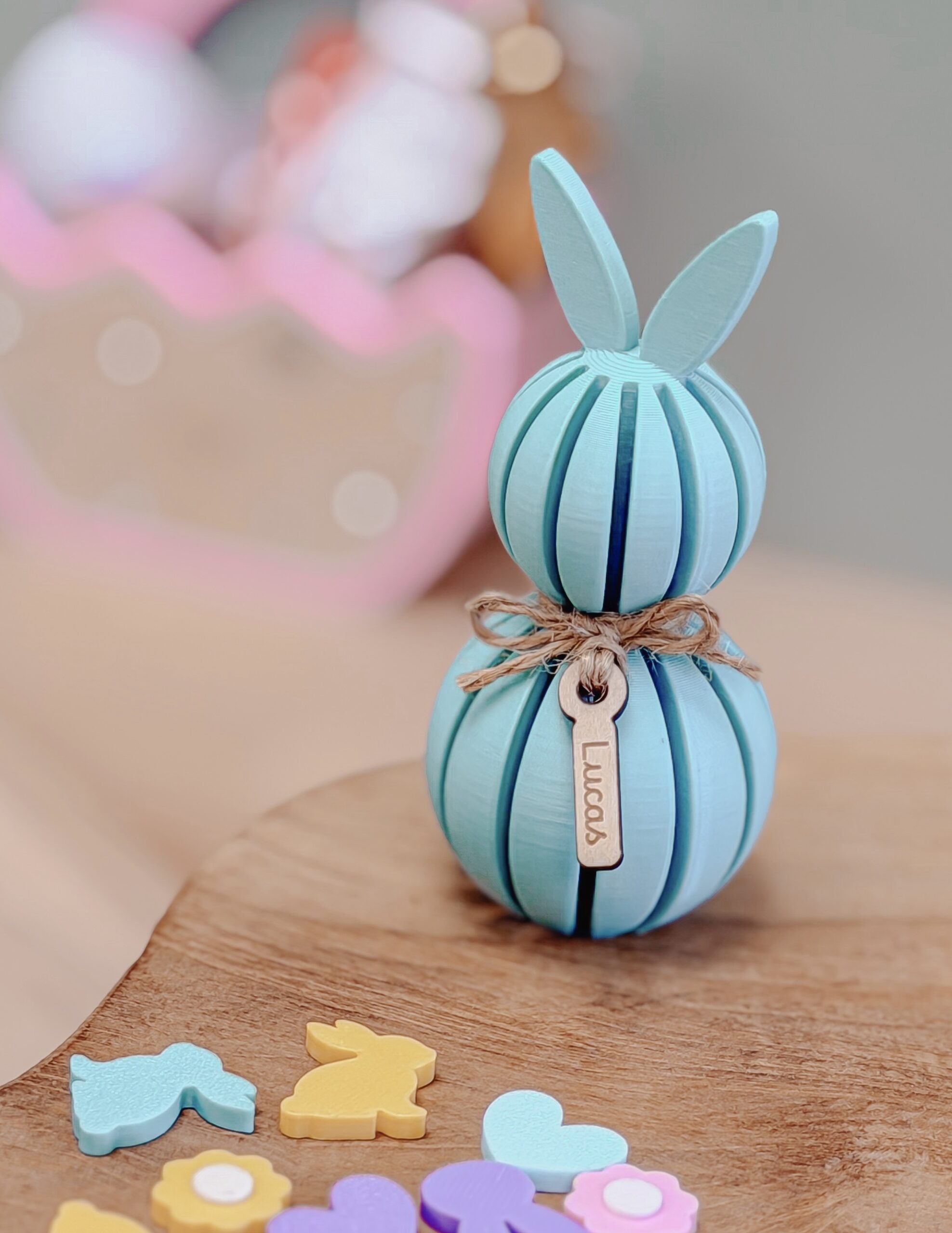 Lapin de Pâques en 3D et sa petite étiquette bois personnalisé