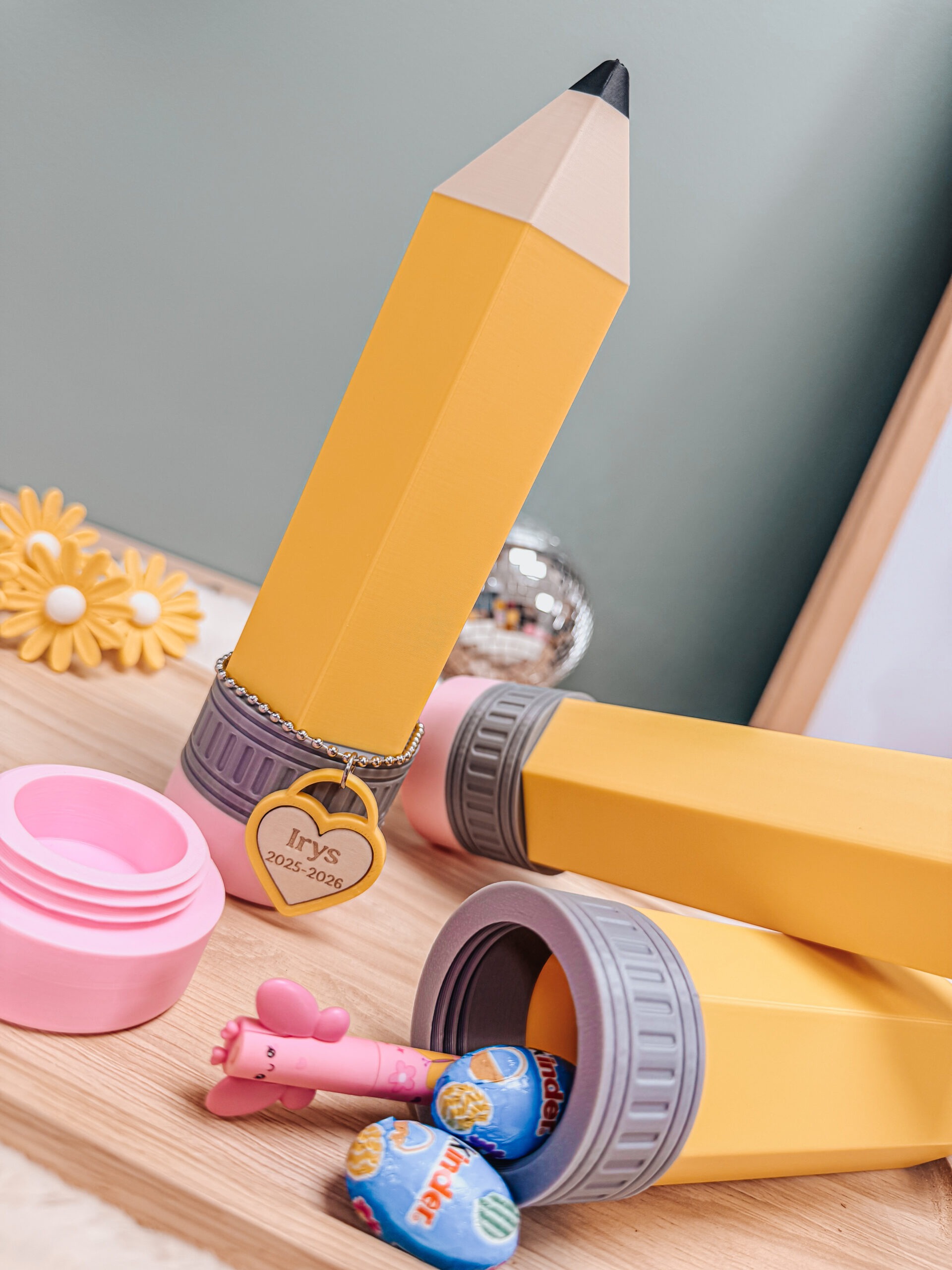 Marquez les esprits avec ce contenant géant en forme de crayon (19cm), spécialement conçu pour célébrer la fin d’année scolaire.