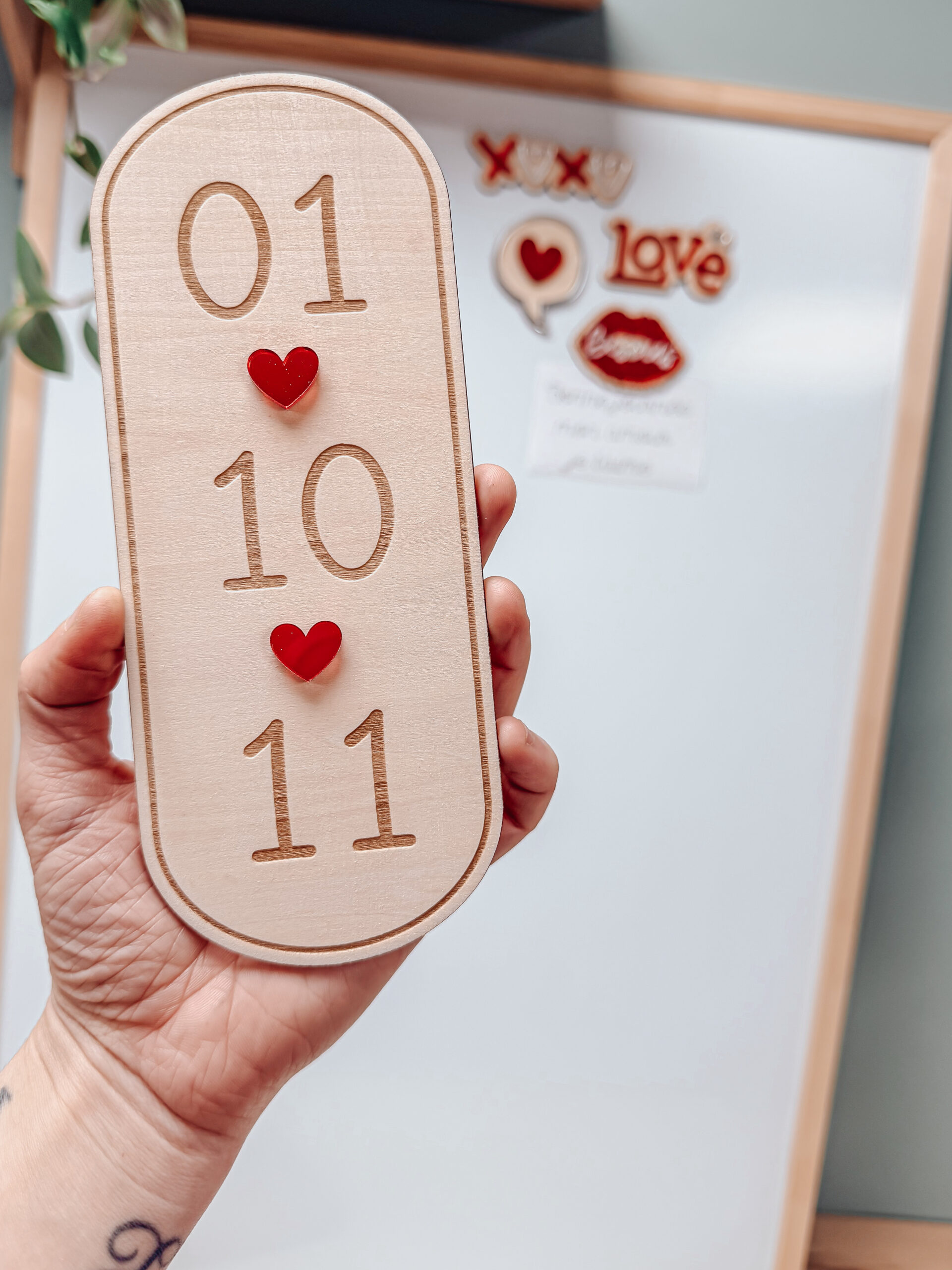 Pancarte date cœurs 18.5 cm de long 7.5 cm de large