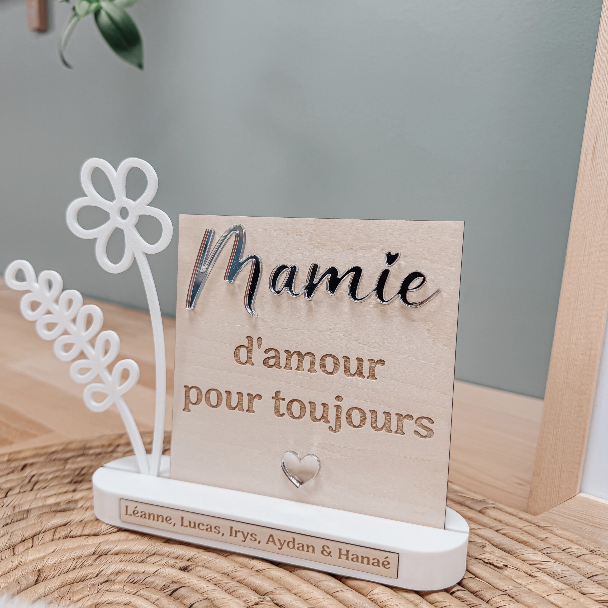 Cette décoration associe la chaleur du bois naturel et la délicatesse du PLA pour un rendu moderne, doux et plein d’émotion.