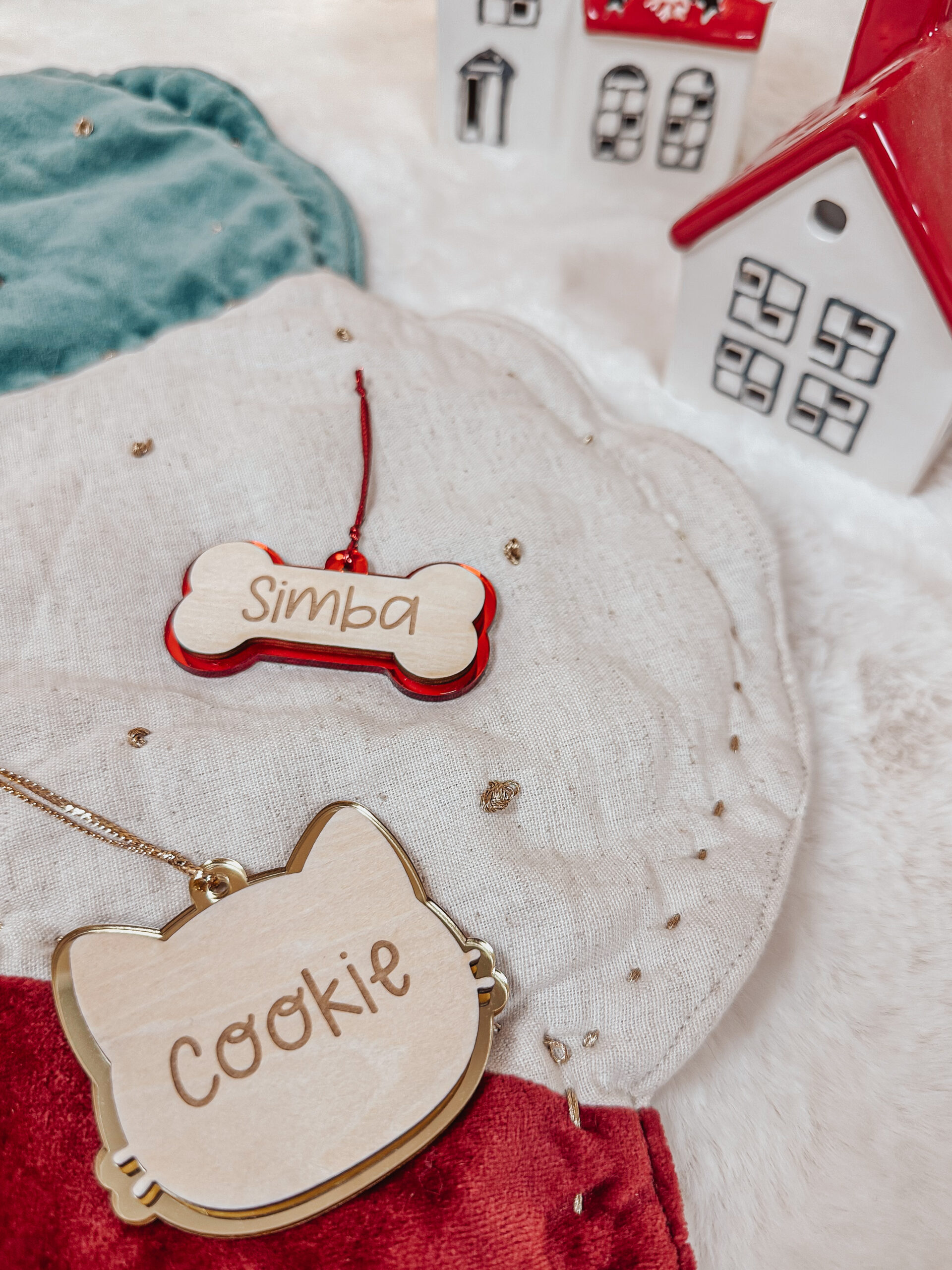 La suspension tête de chat ou os, gravée et personnalisée avec le prénom.